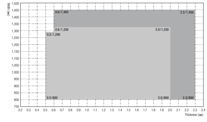 제조가능 범위 외 size는 별도 수주 검토 필요 (문의)