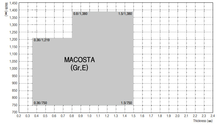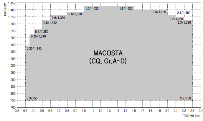 제조가능 범위 외 size는 별도 수주 검토 필요 (문의)