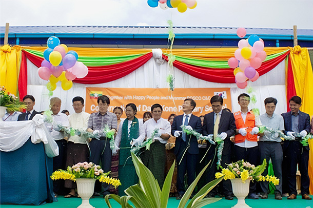 미얀마법인에서 생산하는 제품은 주택 지붕 개량과 공장 벽체 등 미얀마 국민들의 주거환경 개선과 산업화에 사용되고 있어 미얀마 경제·사회 발전에 기여하고 있으며, 이외에도 미얀마 법인은 취약계층을 위한 학교 건립, 정수 우물 설치 등 다양한 사회공헌 활동을 수행하고 있습니다.